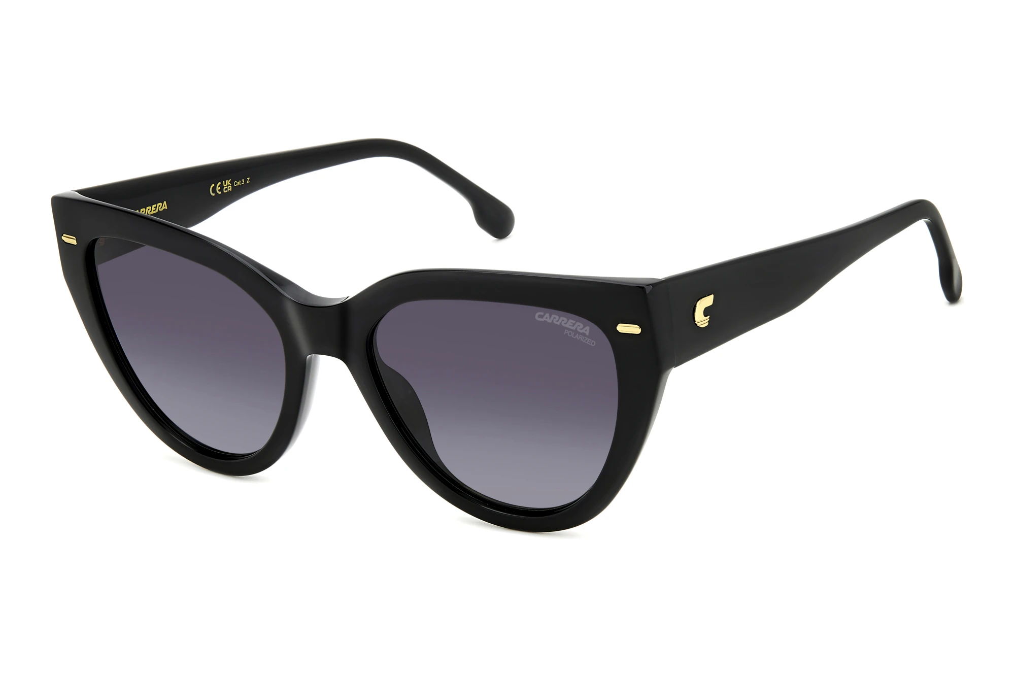 Das Brillengestell ist speziell für Powerfrauen entworfen. Anmutiges Design und Ausdrucksstärke verbinden sich zu klassischem Chic. Die Cat-Eye-Form lässt den Blick verführerisch und geheimnisvoll wirken. Die CARRERA 3017/S hat fast schon etwas Anzügliches. Auf jeden Fall ziehst Du die Aufmerksamkeit auf Dich. Kunststoffbrillen, wie diese, kombinieren lange Lebensdauer mit hohem Tragekomfort. Die CARRERA 3017/S sitzt sehr angenehm auf Nase und Ohren. Optimalen UV400 Schutz für Deine Augen bietet diese Markensonnenbrille natürlich auch. Ob im Straßenverkehr oder auf der Piste, bei der eigenen Sicherheit kommt es manchmal auch auf den Blickwinkel an. Durch die polarisierenden Gläser in diesem Modell wird zurückgeworfenes Licht von reflektierenden Oberflächen, wie Wasser, Glas oder Schnee ausgelöscht. So ist beste Sicht garantiert.