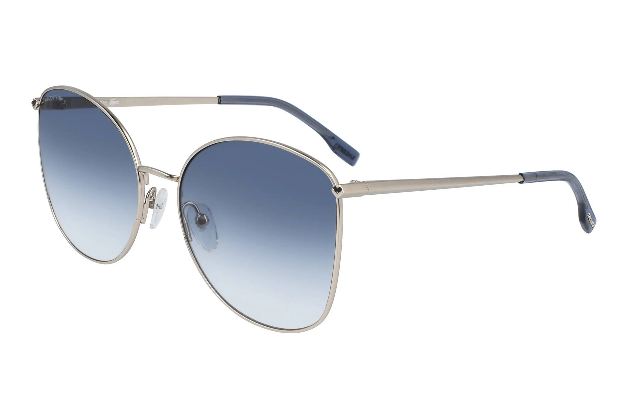 Das Brillengestell ist speziell für Powerfrauen entworfen. Anmutiges Design und Ausdrucksstärke verbinden sich zu klassischem Chic. Mit dem Vollrand machst Du bei diesem Modell unmissverständlich klar, dass Du auf’s Ganze gehst. Die Schmetterlingsform zieht alle Blicke auf sich. Sie ist durch ihre Extravaganz genau das richtige für selbstbewusste Persönlichkeiten. Für etwas kürzere Gesichter ist der Look besonders geeignet, da diese durch die spezielle Form in die Länge gezogen werden und so schmaler erscheinen. Der edle Metallrahmen erlaubt die filigrane Linienführung und schafft eine außergewöhnliche Leichtigkeit in der Erscheinung. Zudem sind Metallbrillen quasi unverwüstlich – robust, flexibel und korrosionsbeständig. Die Farbe Gold ist in 2021 absolut angesagt. Diese Lacoste schenkt jedem Outfit das gewisse Etwas. Gerade dunklere Hauttypen können damit überhaupt nichts falsch machen. Blaue Gläser sind ein auffälliges Mode-Statement. Allerdings eignen sie sich nicht zur Nutzung im Straßenverkehr. Wie bei allen Sonnenbrillen in unserem Shop, kannst Du Dich auch auf den garantierten UV400 Schutz verlassen.