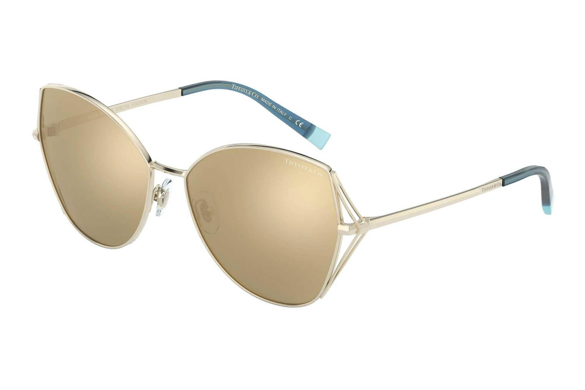 Das Brillengestell ist speziell für Powerfrauen entworfen. Anmutiges Design und Ausdrucksstärke verbinden sich zu klassischem Chic. Bei dem Vollrand Gestell sind die Gläser vom Rahmen komplett umschlossen. Wer aus Überzeugung Brillenträger ist, für den kommt etwas anderes nur in Ausnahmefällen in Frage. Die Schmetterlingsform zieht alle Blicke auf sich. Sie ist durch ihre Extravaganz genau das richtige für selbstbewusste Persönlichkeiten. Für etwas kürzere Gesichter ist der Look besonders geeignet, da diese durch die spezielle Form in die Länge gezogen werden und so schmaler erscheinen. Der edle Metallrahmen erlaubt die filigrane Linienführung und schafft eine außergewöhnliche Leichtigkeit in der Erscheinung. Zudem sind Metallbrillen quasi unverwüstlich – robust, flexibel und korrosionsbeständig. Die Farbe Gold ist in 2020 absolut angesagt. Diese Tiffany schenkt jedem Outfit das gewisse Etwas. Gerade dunklere Hauttypen können damit überhaupt nichts falsch machen. Gelbe Gläser sind für sportliche Aktivitäten von Vorteil, da der Träger Kontraste besser erkennen kann. Für den Straßenverkehr sind sie jedoch aufgrund der abweichenden Farbwahrnehmung eher ungeeignet. Auch funktional bist Du hier natürlich auf der sicheren Seite. Mit 100% UV-Schutz für Deine Augen kann die Sonne kommen.